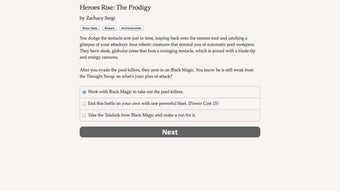 Cała gra jest tekstowa, co pozwala na pełne wykorzystanie wyobraźni gracza. W Heroes Rise: The Prodigy nie znajdziemy grafiki ani efektów dźwiękowych, co sprawia, że doświadczenie opiera się wyłącznie na narracji i wyborach. To unikalne podejście do gatunku RPG przyciąga miłośników literackich przygód oraz tych, którzy cenią sobie głębokie fabuły i możliwość kreowania własnej historii.